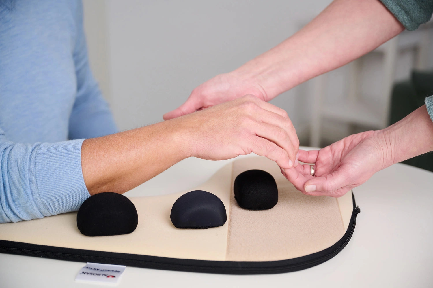 Mit der Arm-Schiene bin ich sehr zufrieden. Für mich ist die Schiene eine grossartige Hilfe in vielen Situationen, und auch vor jeder Anwendung. Der betroffene Arm behält meine ganze Aufmerksamkeit. Das beeinflusst auch die ganze Körperwahrnehmung positiv.